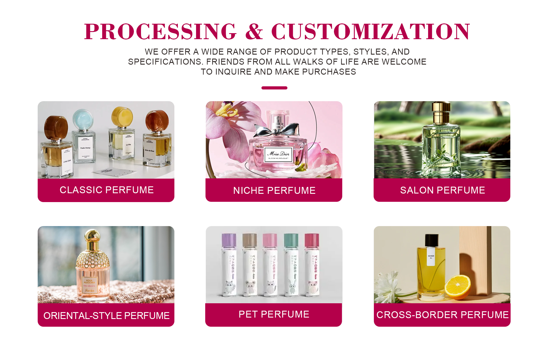 We’re here for your fragrance needs—product inquiries, OEM/ODM, samples, or bulk orders. Reach out via the form, email, or phone, and we’ll respond promptly.